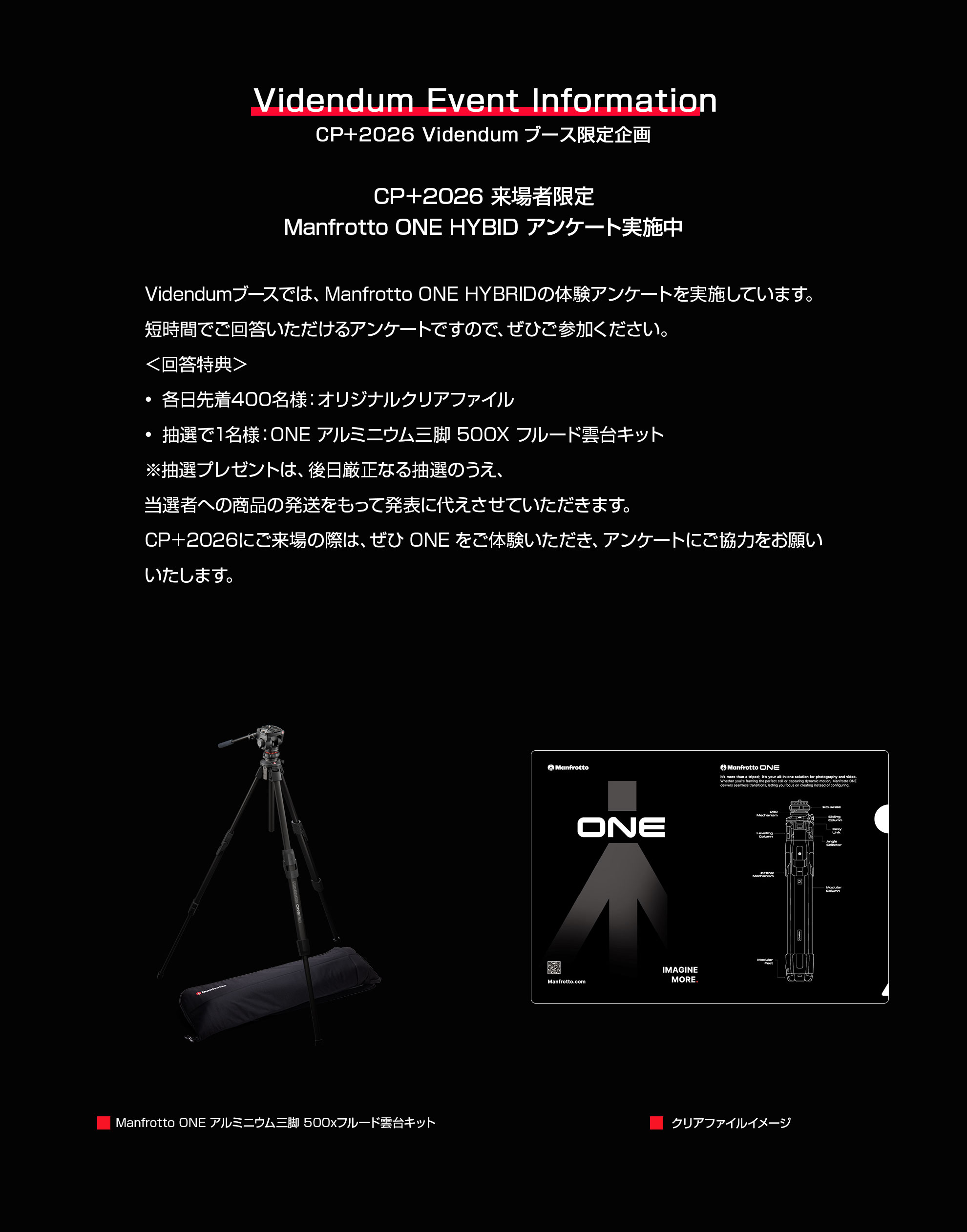 YouTube Channel お問い合わせ Videndum Website What’s Videndumヴィデンダムを知る Our Brands ニュース 会社情報 PRODUCTS製品情報 新製品情報 ブランド情報 カタログダウンロード ショールームのご案内 SUPPORTユーザーサポート 製品登録 修理受付窓口・認定店 修理規定 シリアルナンバー 取扱説明書ダウンロード カタログダウンロード YouTube チャンネル NEWS ニュース 2026/2/2 Videndum CP+2026