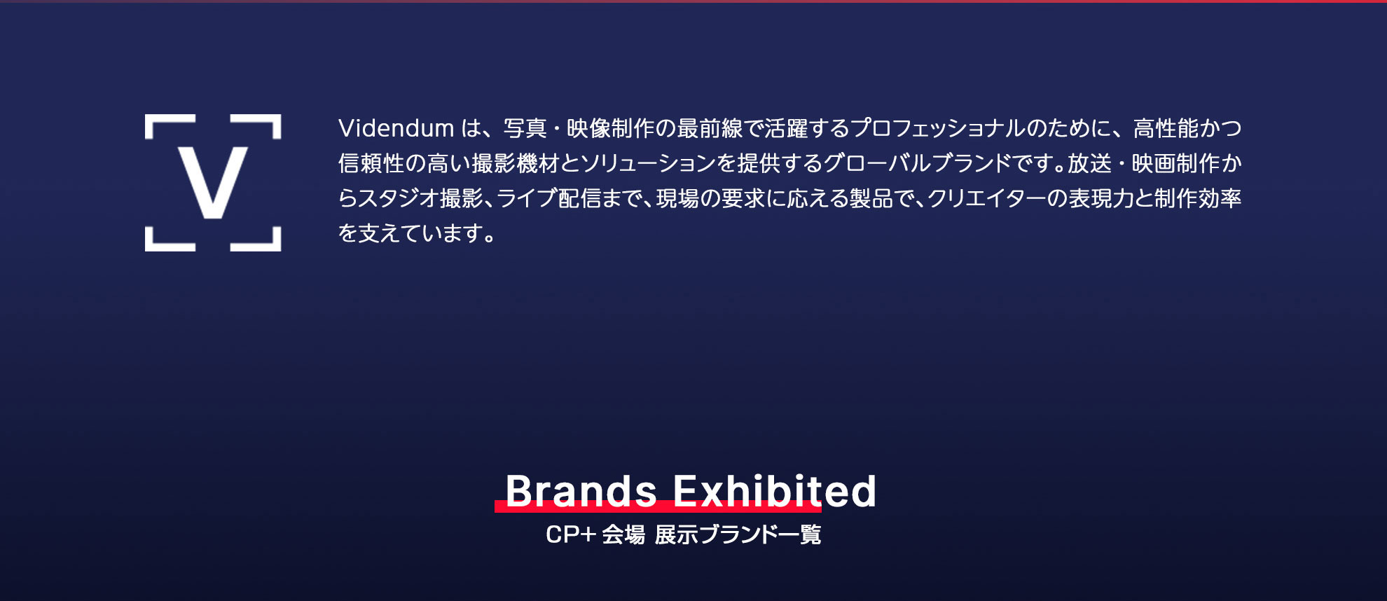 YouTube Channel お問い合わせ Videndum Website What’s Videndumヴィデンダムを知る Our Brands ニュース 会社情報 PRODUCTS製品情報 新製品情報 ブランド情報 カタログダウンロード ショールームのご案内 SUPPORTユーザーサポート 製品登録 修理受付窓口・認定店 修理規定 シリアルナンバー 取扱説明書ダウンロード カタログダウンロード YouTube チャンネル NEWS ニュース 2026/2/2 Videndum CP+2026